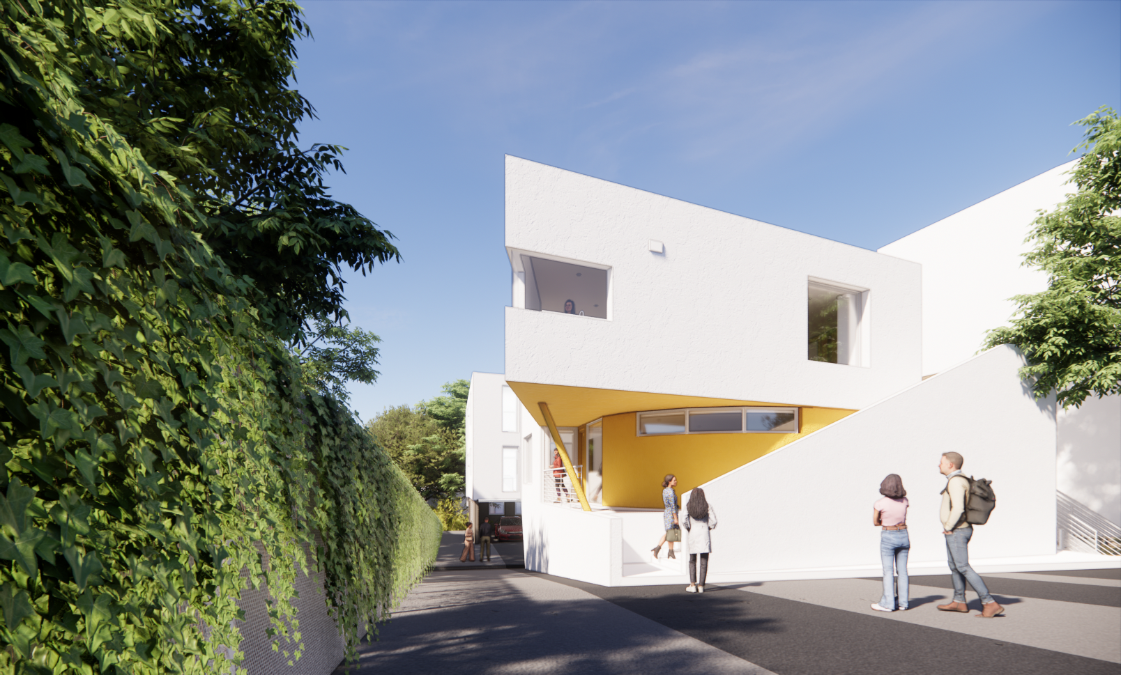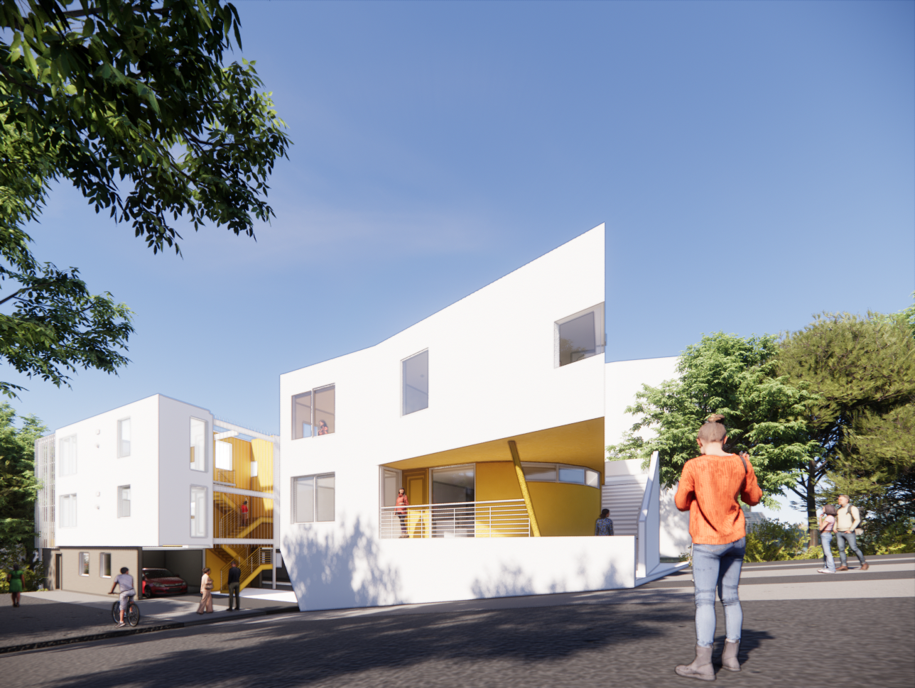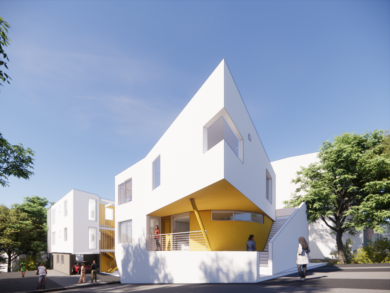 An existing client, for whom the architect designed the pre-school campus, approached us to develop this parcel, which would remove the existing single–family residence and would add six new apartments to the property. The solution is presented in a collection of structures avoiding numerous costly improvements. The design creates a private courtyard space in between the new structures and offers private balconies with views overlooking Silverlake Hills. The design provides a combination of one-bedroom, two-bedroom, and three-bedroom apartments.
